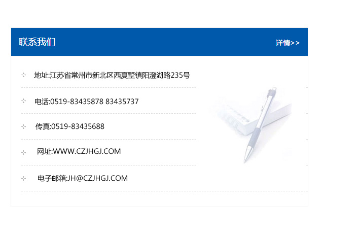 傳真:0519-83435688    郵編:213135    網址:WWW.czjhgj_com.jxrm8888.com    電子郵箱:JH@czjhgj_com.jxrm8888.com
